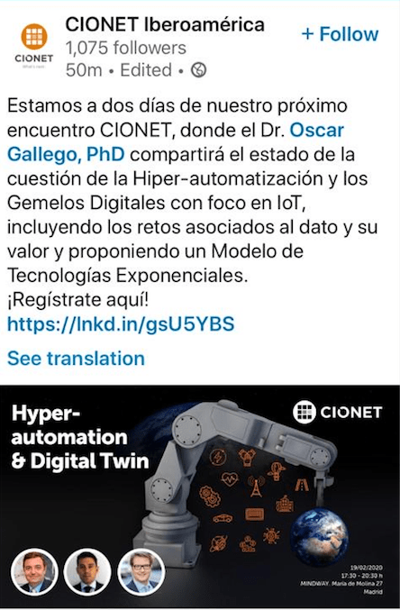 CIONET, Hyperautomation & Digital Twins, Madrid, España, Febrero 2020