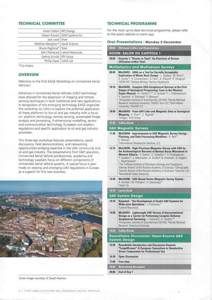 EAGE Workshop, Unmaned Aerial Vehicles, Toulouse, Francia, Diciembre 2019